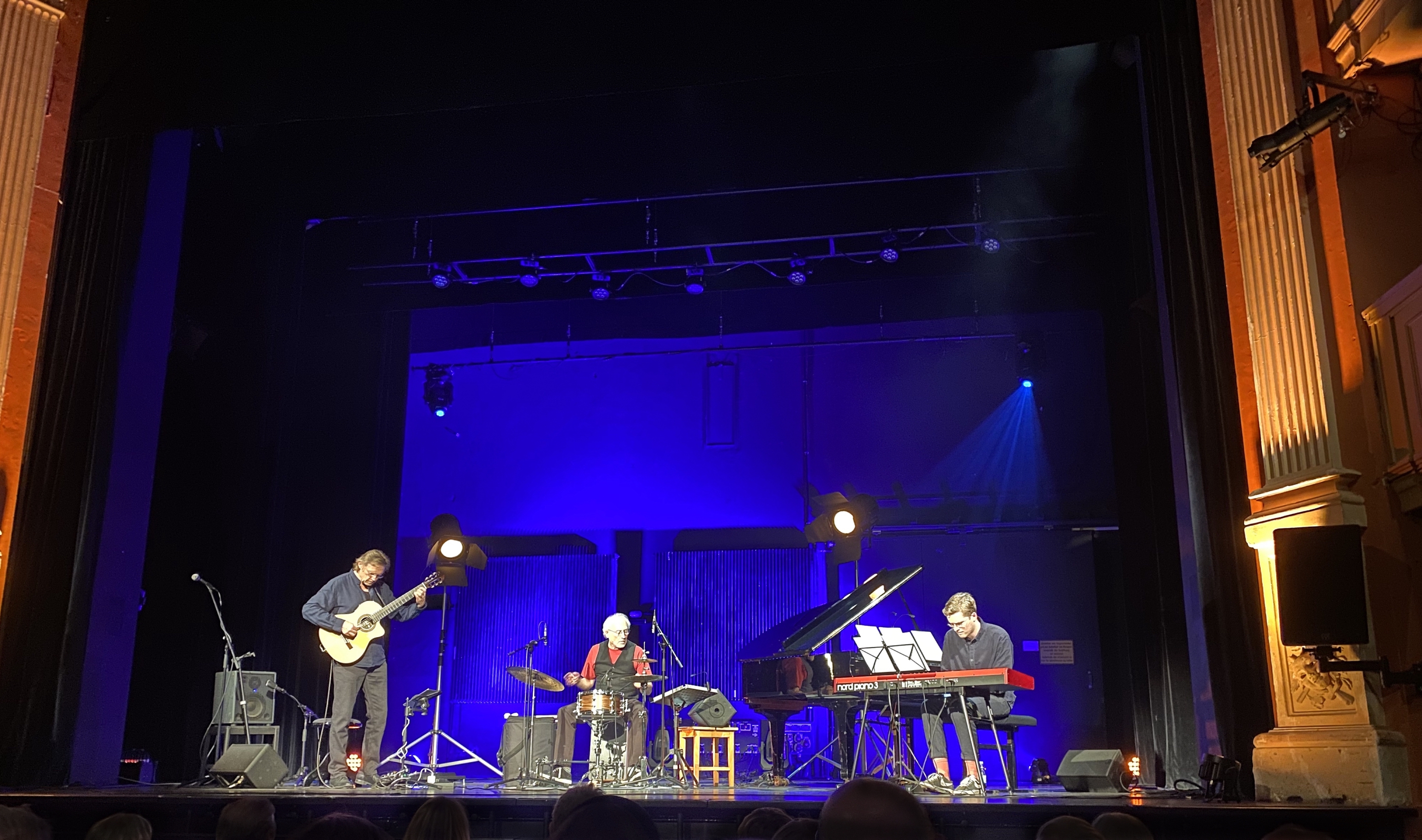 "Jazz zwischen kühlem Skandinavien-Sound, Blues und heißer spanischer Gitarre. Mit dem Album „Shimmering Blue“ hat das Trio „Arnd Sprung Affinity“ einen eigenen Sound gefunden. Die drei Musiker beweisen im Stadttheater ihre Reife als Ensemble. Das begeisterte Publikum forderte Zugaben und spendete jubelnden Applaus. (Augsburger Allgemeine 03.12.2025)